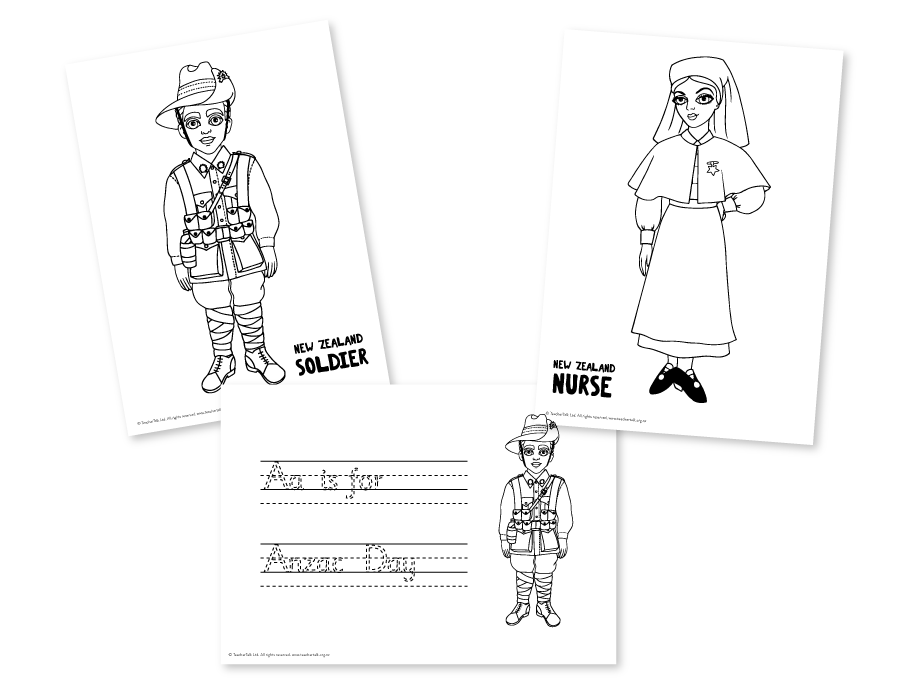 Download these colouring pages and talk about our important ANZAC soldiers and nurses, includes 'A is for ANZAC' writing practice page.