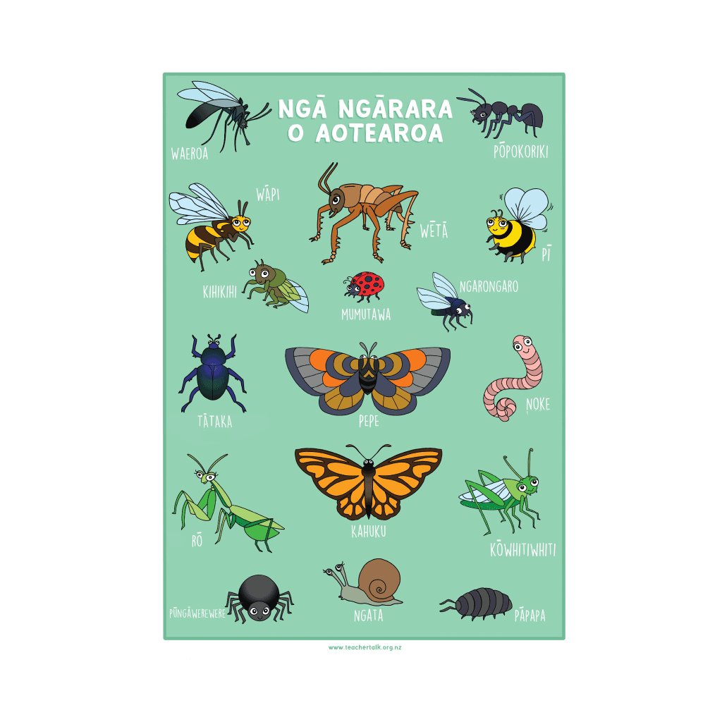 Check out the different bugs of Aotearoa with our A3 poster! Pair with the 'Bugs of Aotearoa' memory game, available to download or as a physical product.