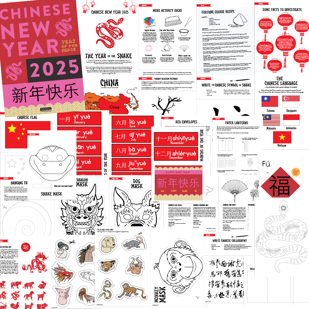 *Instant Download* This Chinese New Year Download kit is perfect for celebrating and learning about Chinese New Year, with a special focus on The Snake. Learn about the signs of the Zodiac, the lantern festival, make your own fortune cookies, create window art and so much more!