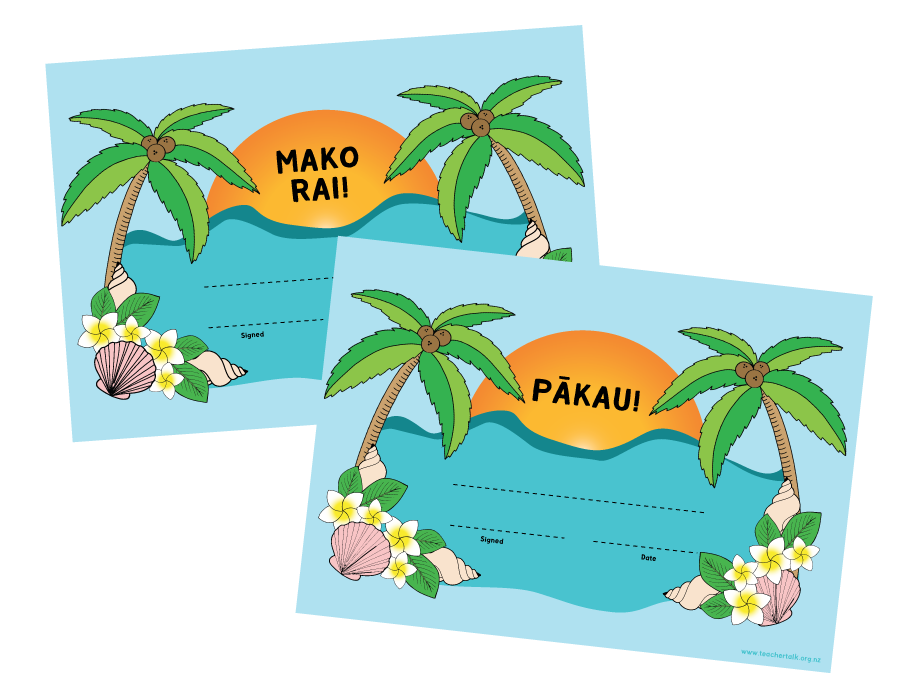 Download these certificates in Cook Islands Māori, Mako Rai - meaning Well done! And Pākau - meaning Awesome.