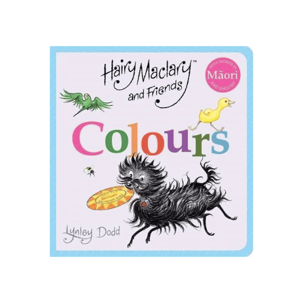 A gorgeous board book with pictures of Hairy Maclary, Scarface Claw and other favourite characters created by Lynley Dodd to teach children their colours in Maori and English. This special little volume is perfect for the young learner and helps to incorporate te reo Maori into everyday life.