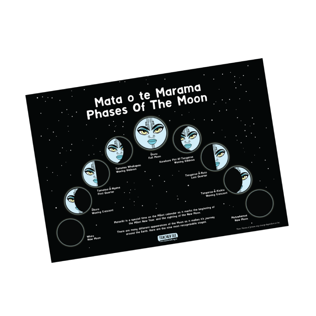 Download our Mata o te Marama - Moon Phases A3 Poster and learn the phases of the moon during your Matariki celebrations. Or add to a wall display!