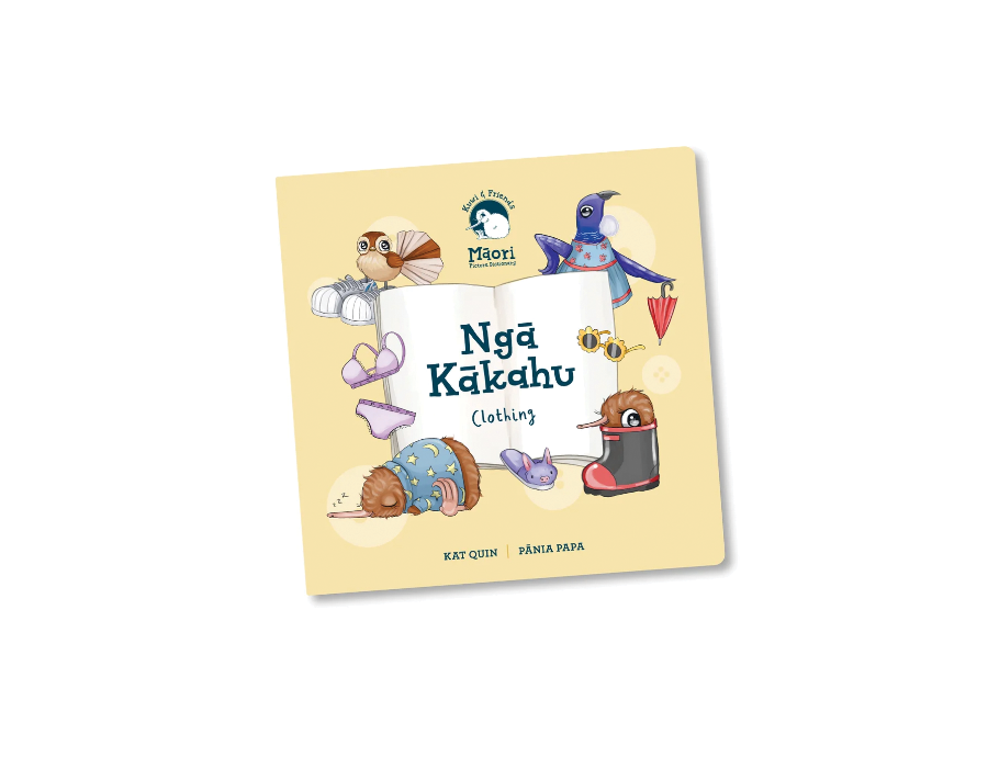 Learn the Māori words for 32 items of clothing, modelled by the cutest native critters. A beautifully presented te reo Māori and English board book. Drawn from the multi-award-winning Kuwi & Friends Māori Picture Dictionary, and collated into bite sized pukapuka. A stunning matte laminated robust book with rounded corners, for durability and longevity. Perfect to learn and share with tamariki in the home or in the classroom. A portion from each purchase is donated to the 'Save the Kiwi' charity.