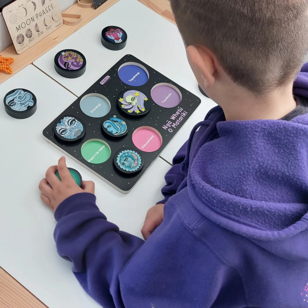 Little ones will love learning about Ngā Whetū o Matariki with this natural wooden puzzle. With it’s big pieces (easy to hold and play), bold illustrations and bright colours it makes a great activity for tamariki 0-5 years.