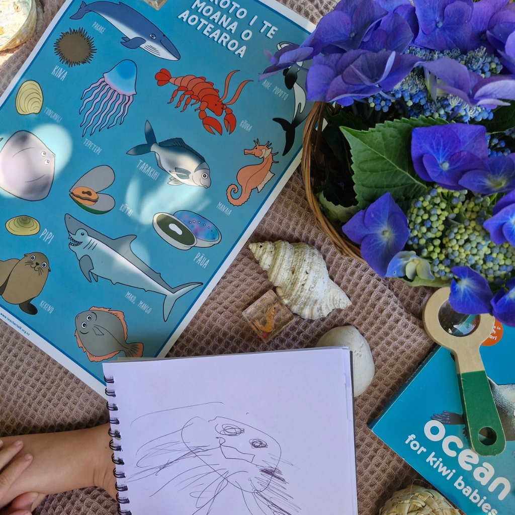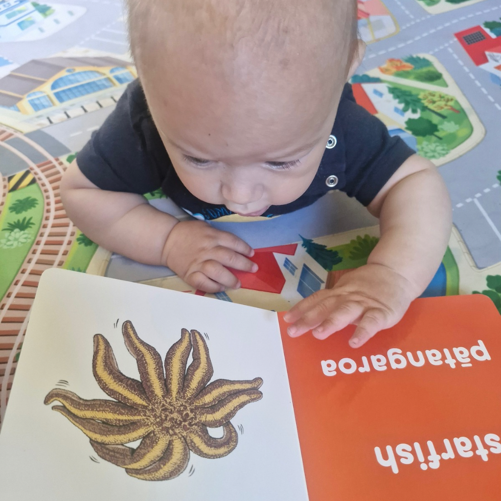 Let's go exploring under the sea to learn the names of sea creatures in English and Māori. This beautiful, brightly illustrated board book introduces babies to the sea creatures of Aotearoa.