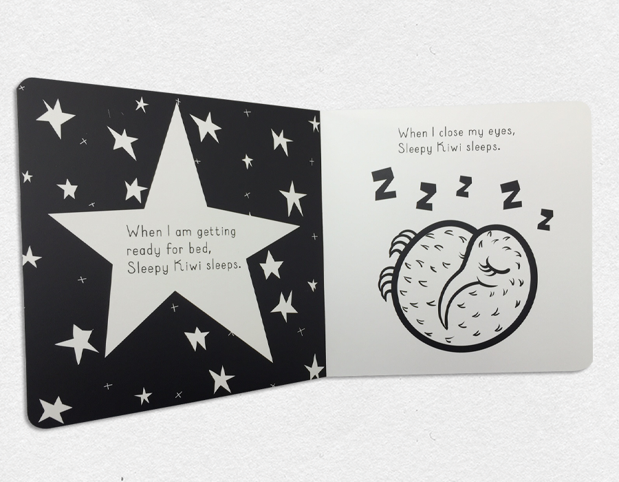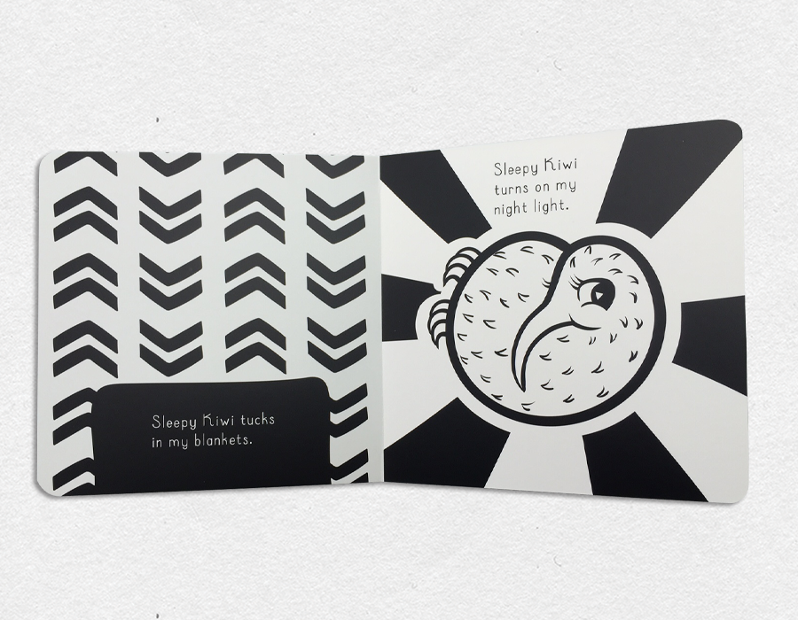 Kiwi are a very special and rare nocturnal bird, native to New Zealand. The perfect character to juxtapose the erratic sleep patterns of a newborn baby.