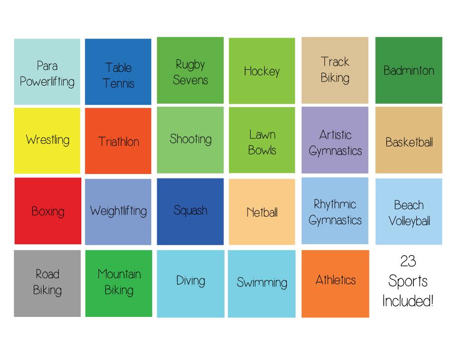 Grab our sports matching game download! Includes 23 sport images to match with their name. Great for word and picture recognition and to learn the different sports that will be involved in the games!