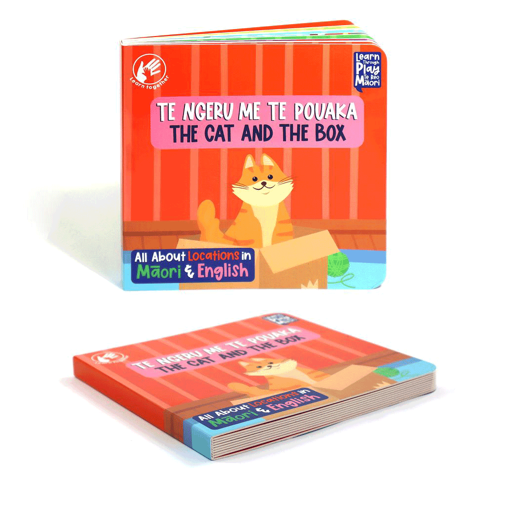 Follow along the cat as he explores his new home filled with boxes. This illustrated board book is part of the Learn Through Play series, promoting the use of Te Reo Māori in everyday life. Simple sentences in Māori and English teach location words like in and out, in front and behind. Repetitive sentence structures help reinforce learning and show how the languages are used.