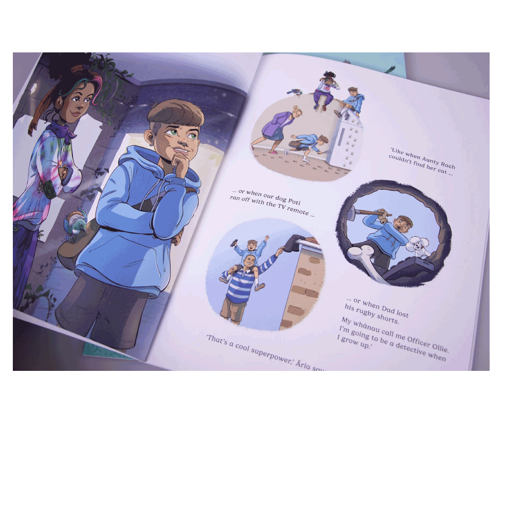 It takes a while for the rest of the team to follow Ollie, who’s got great detective skills, as they find him hard to understand because of his cleft. But Āria encourages their teammates to really listen. Can the team work together to solve the mystery?