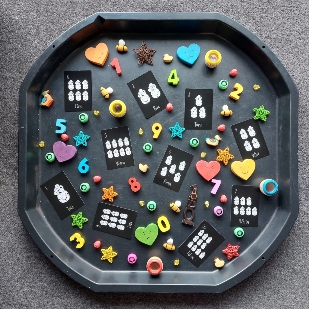 Use these cards numbered from 1-10 now with 2 of each for a fun way to introduce number recognition and early numeracy as a memory game. Incorporate these into your daily programme adding a splash of Māori culture.