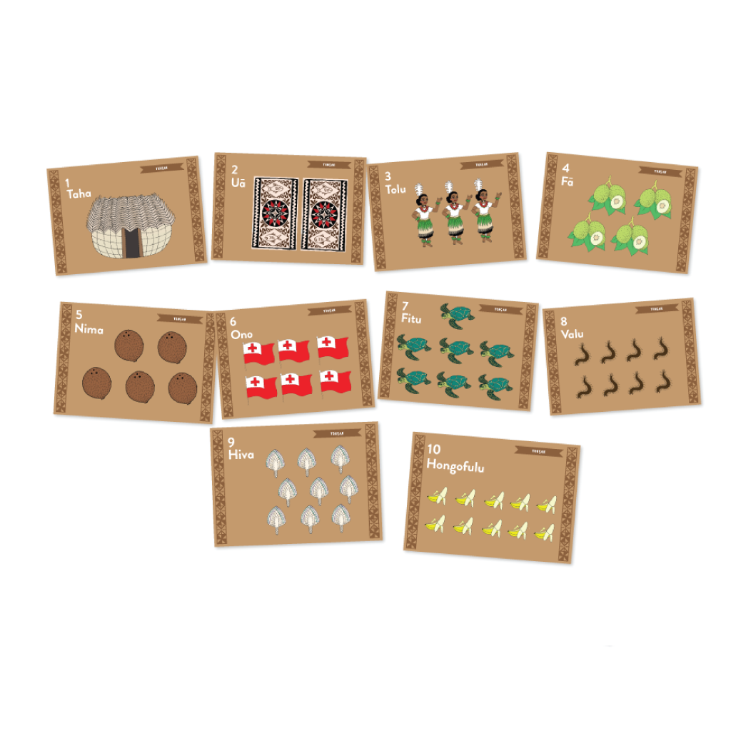 Learn to count to 10 in Tongan with these vibrant counting cards. Print laminate and cut out. This is a digital file.
